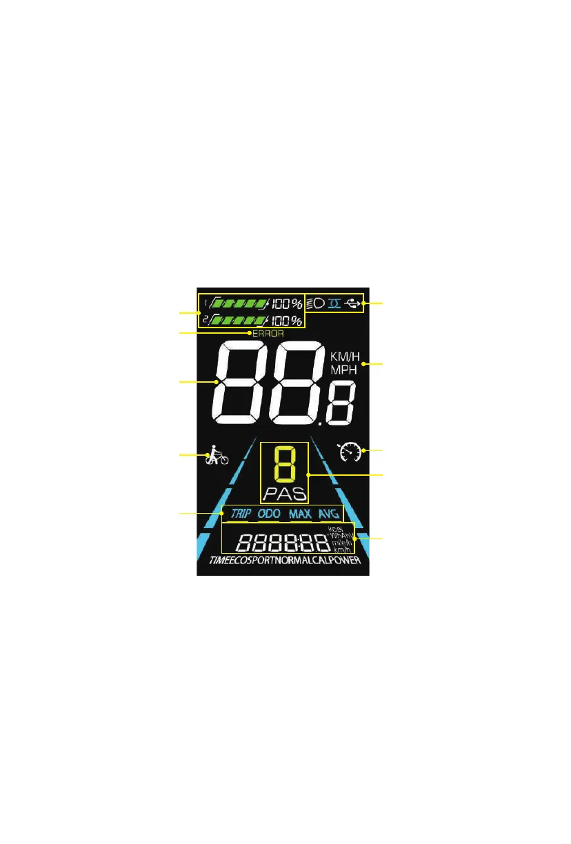límite de velocidad, la potencia de la batería y el ajuste de los parámetros del PAS, el