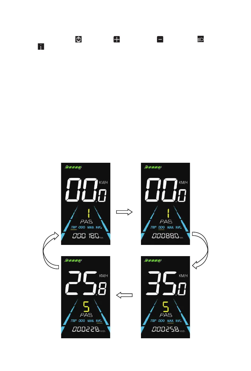 Di default, quando il display è acceso, mostra la velocità attuale (km/h) e il contachilometri