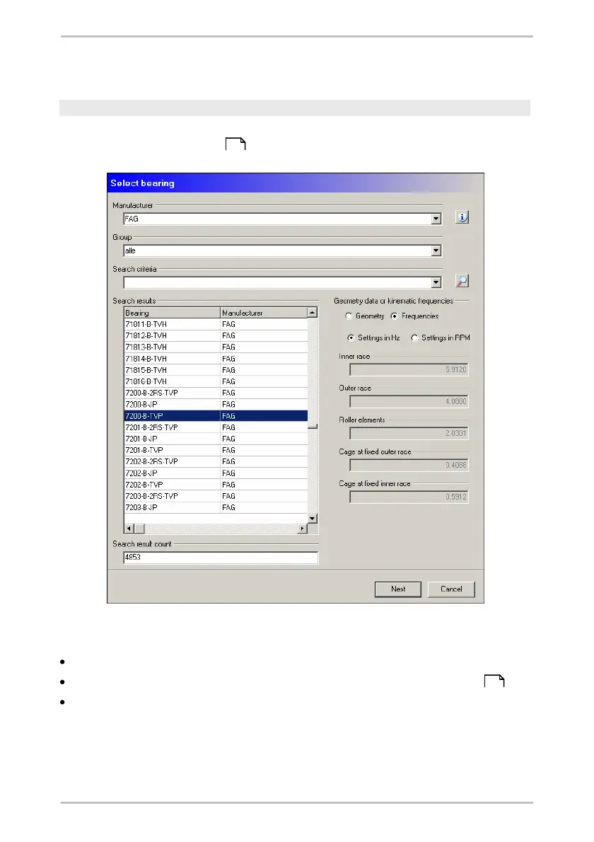 Click on Edit bearing and start by searching for the corresponding bearing as