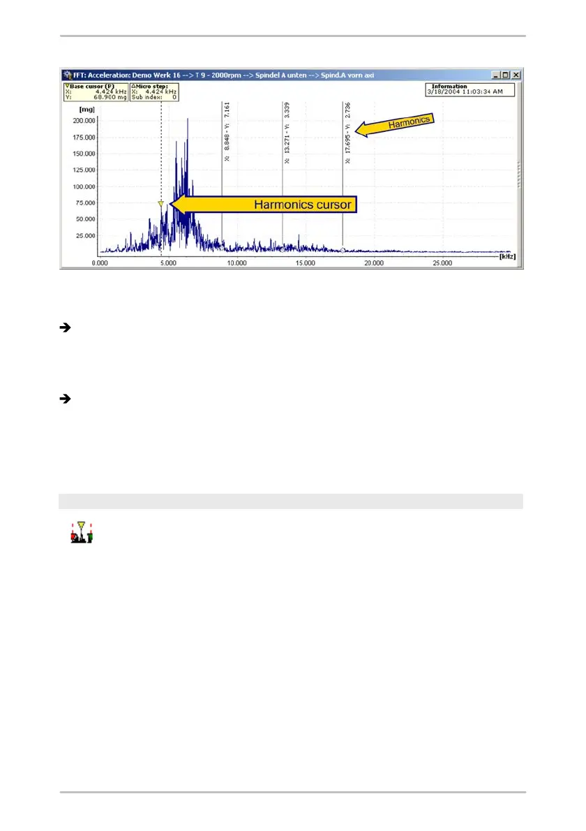 The base cursor and vertical lines are displayed at the harmonic of the basic