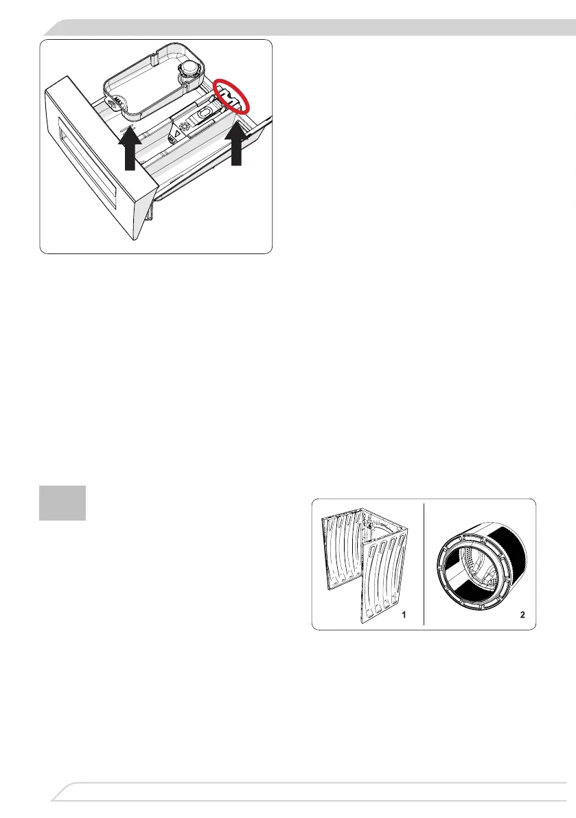 Recolha os depósitos dentro da gaveta para que não caiam na máquina de lavar
