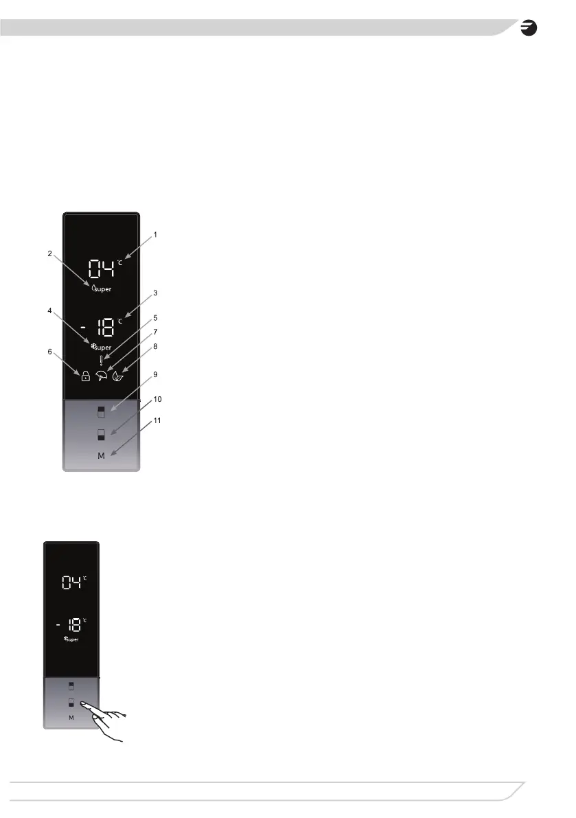 para 8, 6, 5, 4, 2 °C super refrigeração.