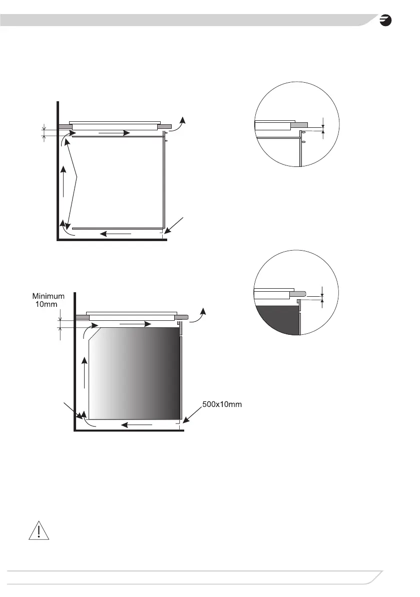 Do not install the hob above the oven without ventilation.