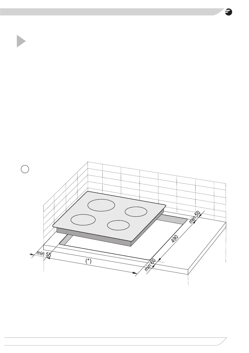 l El grosor de la encimera debe ser de 28 a 40 mm y su anchura mínima de 600 mm. Debe