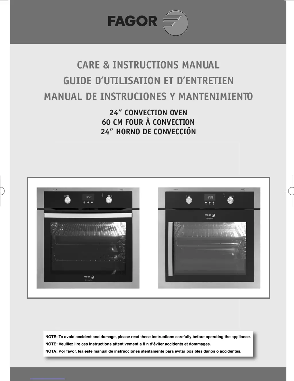 Smoke may appear during use of your Fagor Convection Oven due to two reasons: the oven temperature may be too high (reduce the oven temperature), or the oven might be greasy (clean the oven).