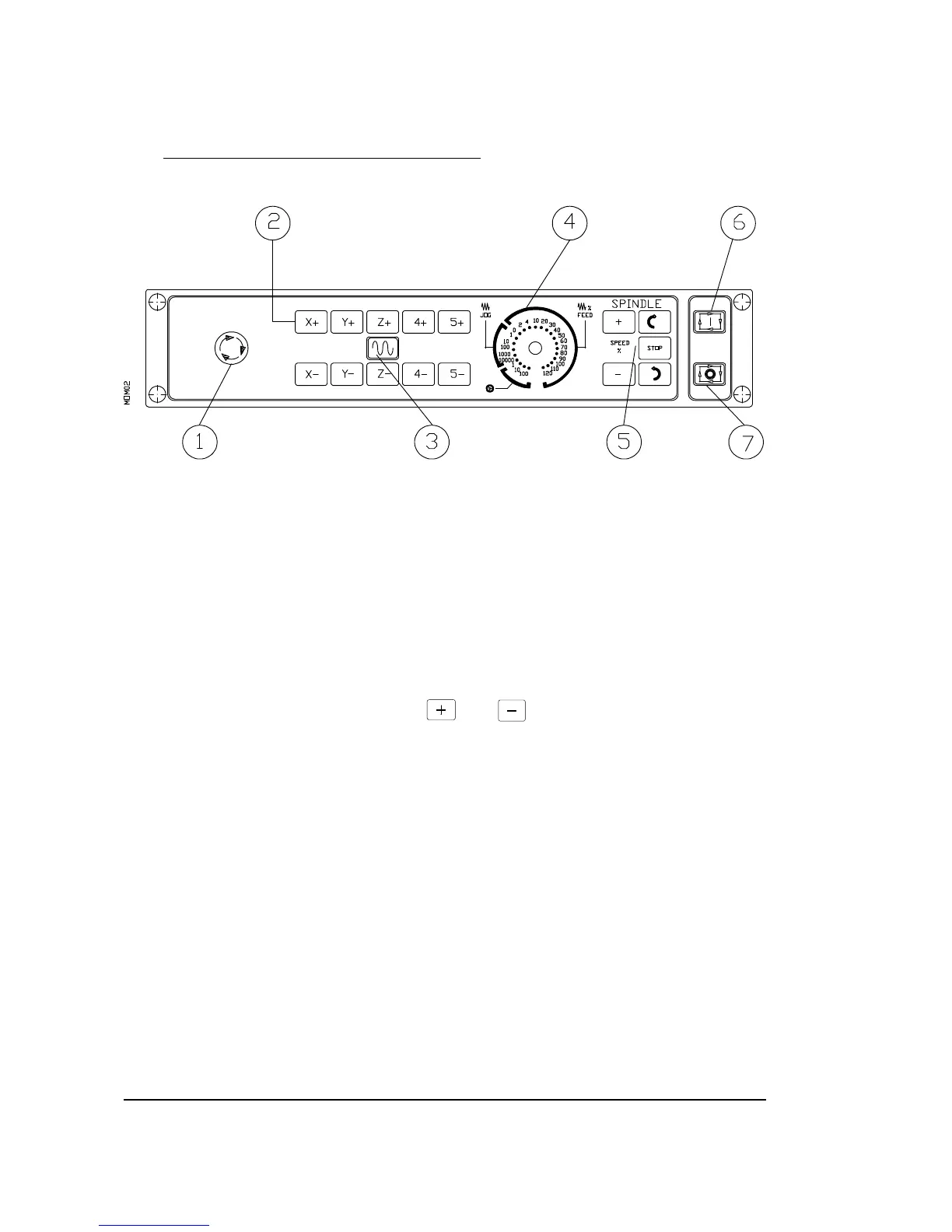 5. Spindle operating keys. Allow the spindle to be put into OPERATION and to STOP