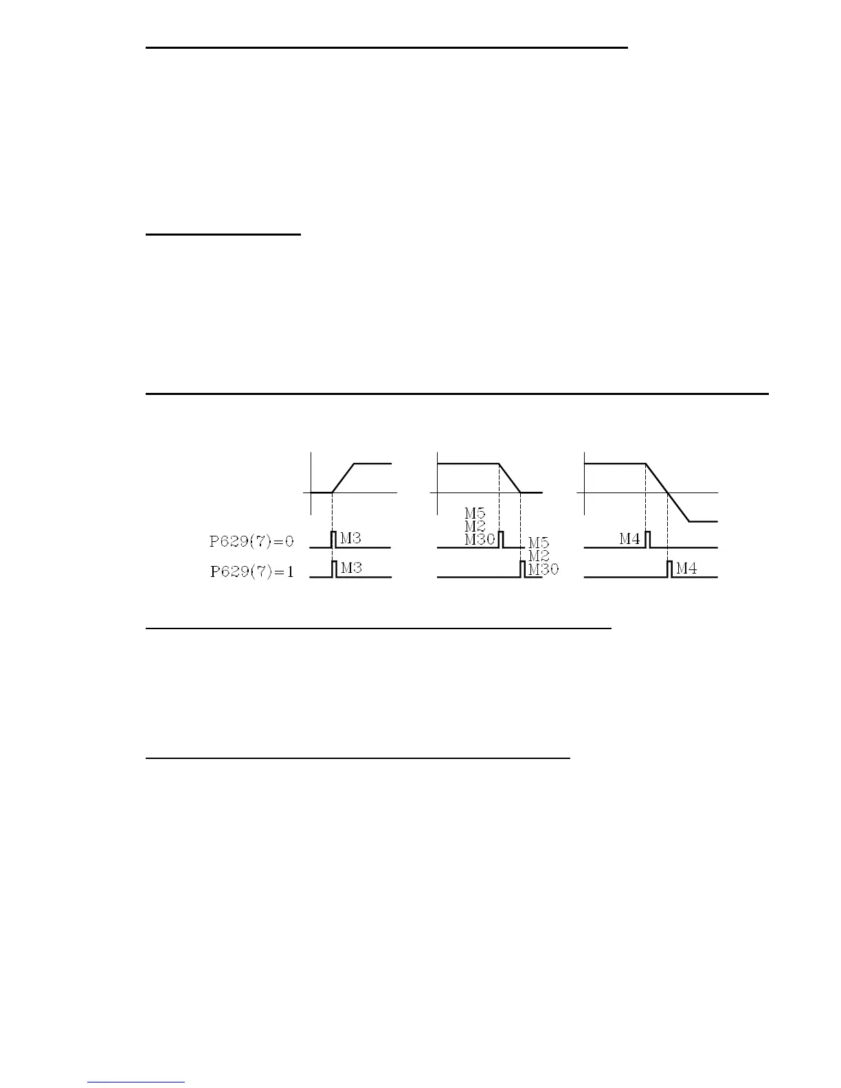 Machine parameter "P629(7)" indicates when the M3, M4, M5 functions are sent out while accelerating or decelerating