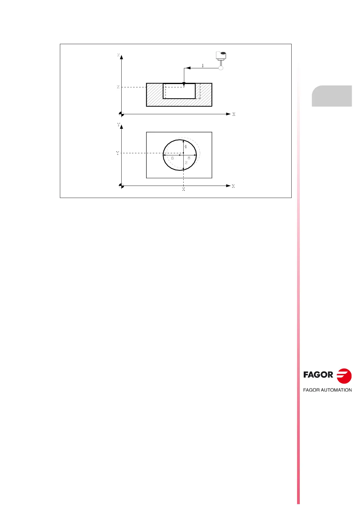 ·2· Return of the probe in rapid (G00) the distance indicated in (E).