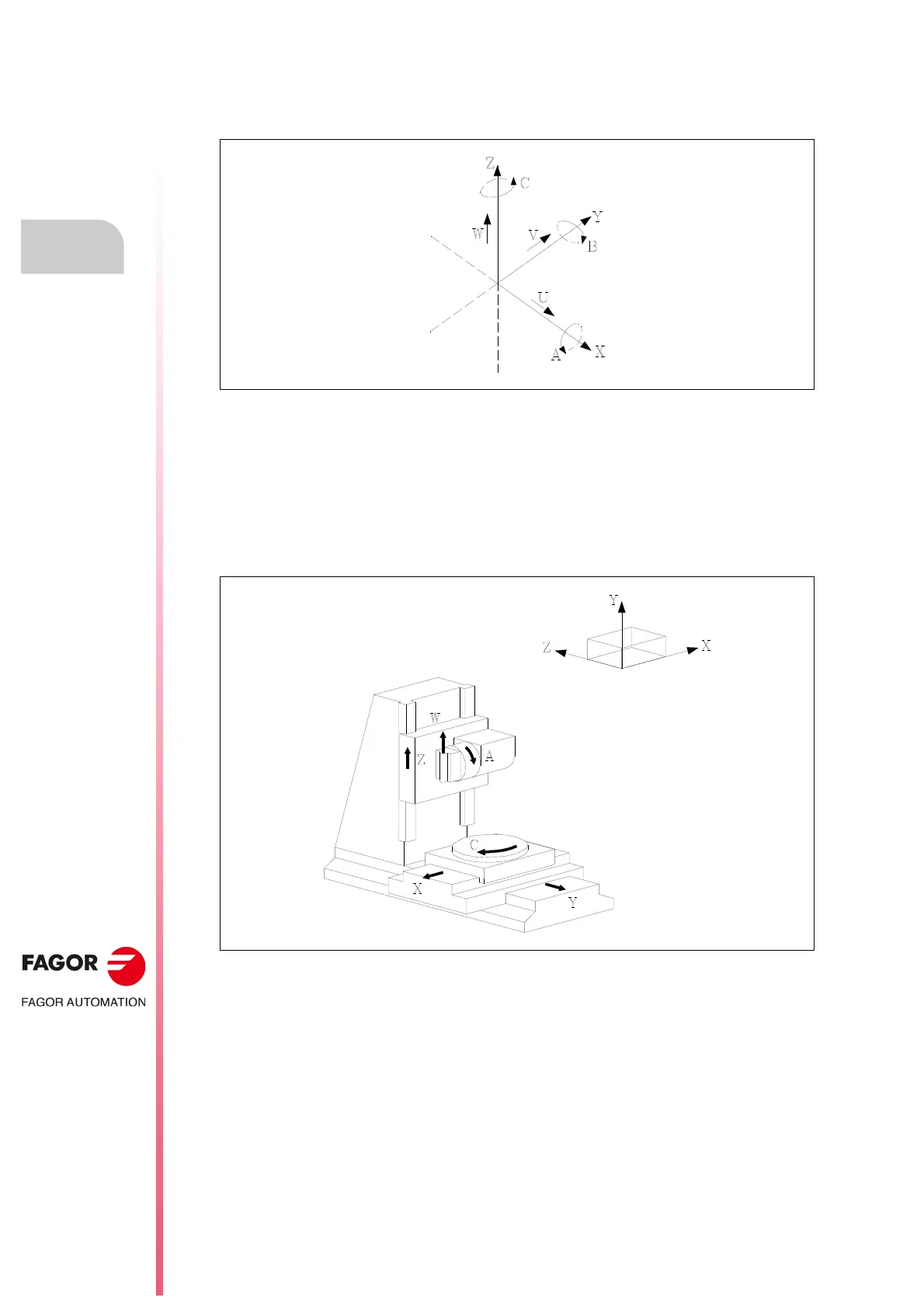 The drawing below shows an example of the nomenclature of the axes on a milling-profiling machine