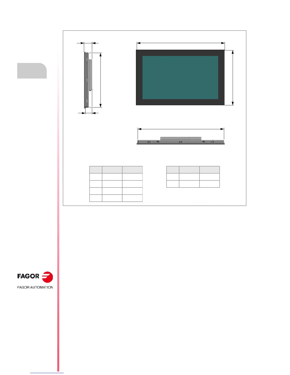 Fagor 8065 M - 2.3 Monitor Dimensions; Dimensions Table