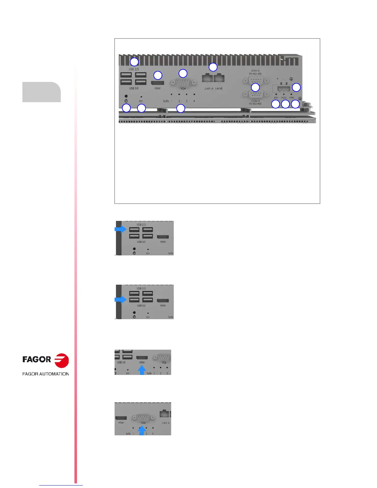 of these inputs. Always use the cable supplied by Fagor for the