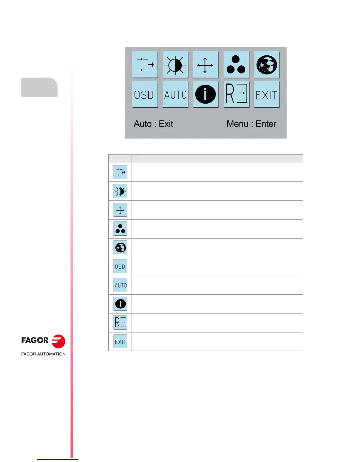 Fagor 8065 M - 3.9.2 Displaying the OSD Menu; OSD Menu Icons and Navigation