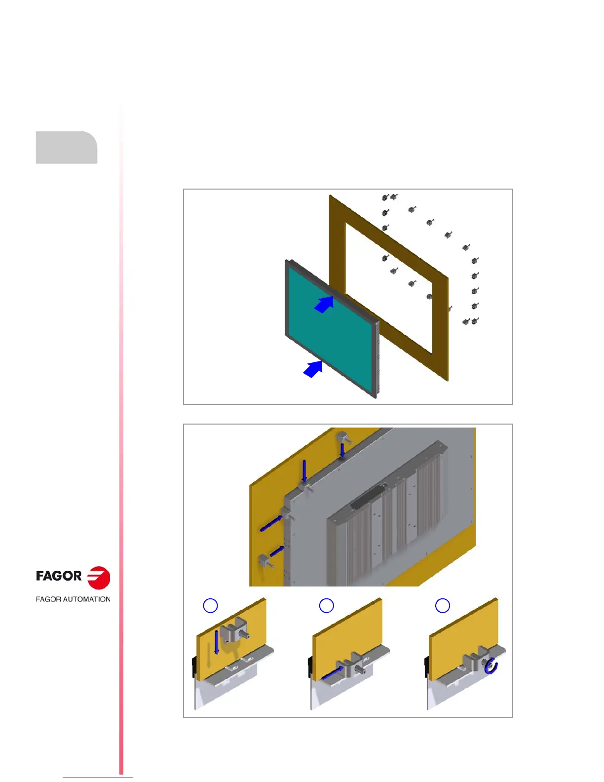 1 Installing the monitor in the enclosure.