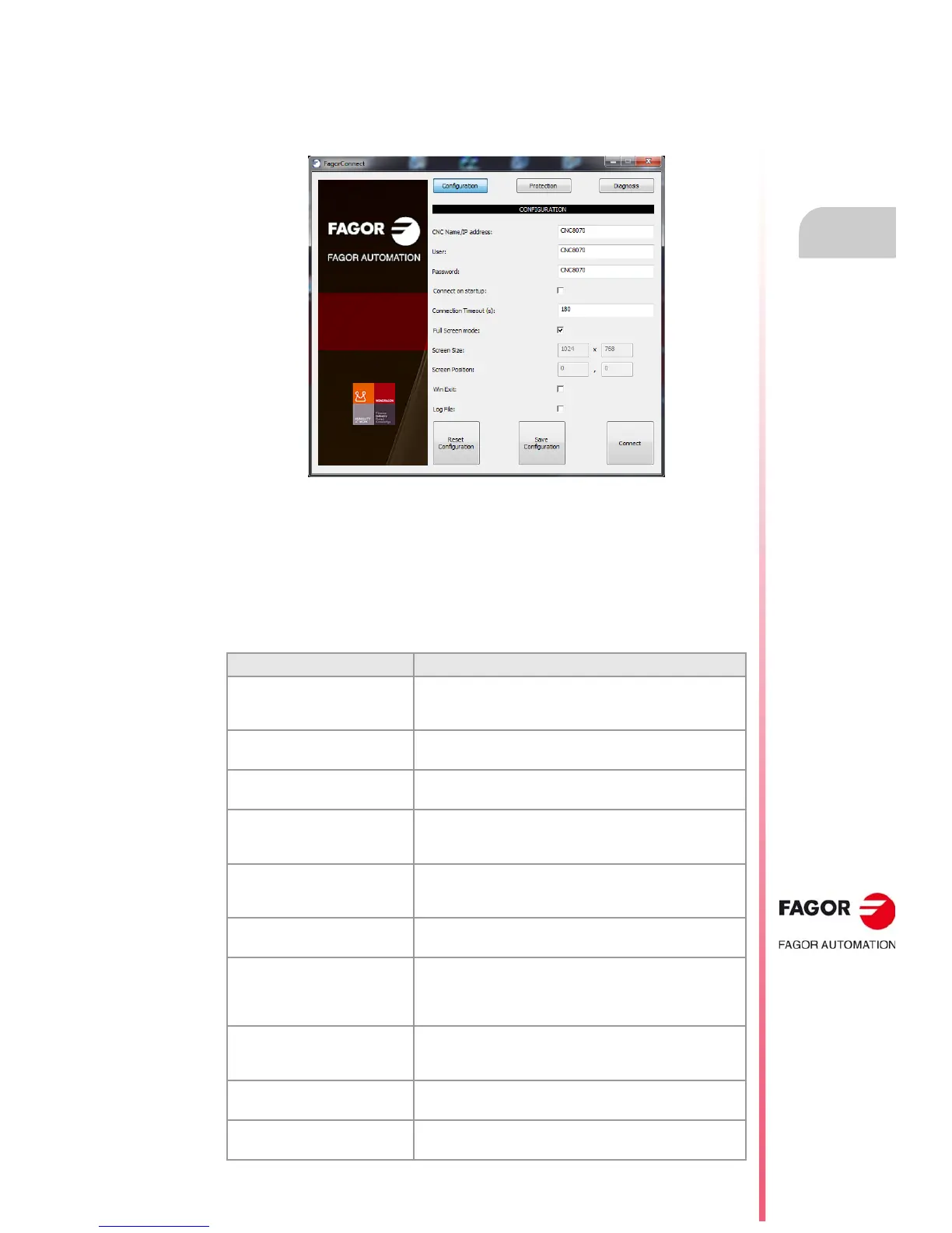 FagorConnect.ini file. The configuration is saved in this file when the "Save Configuration"