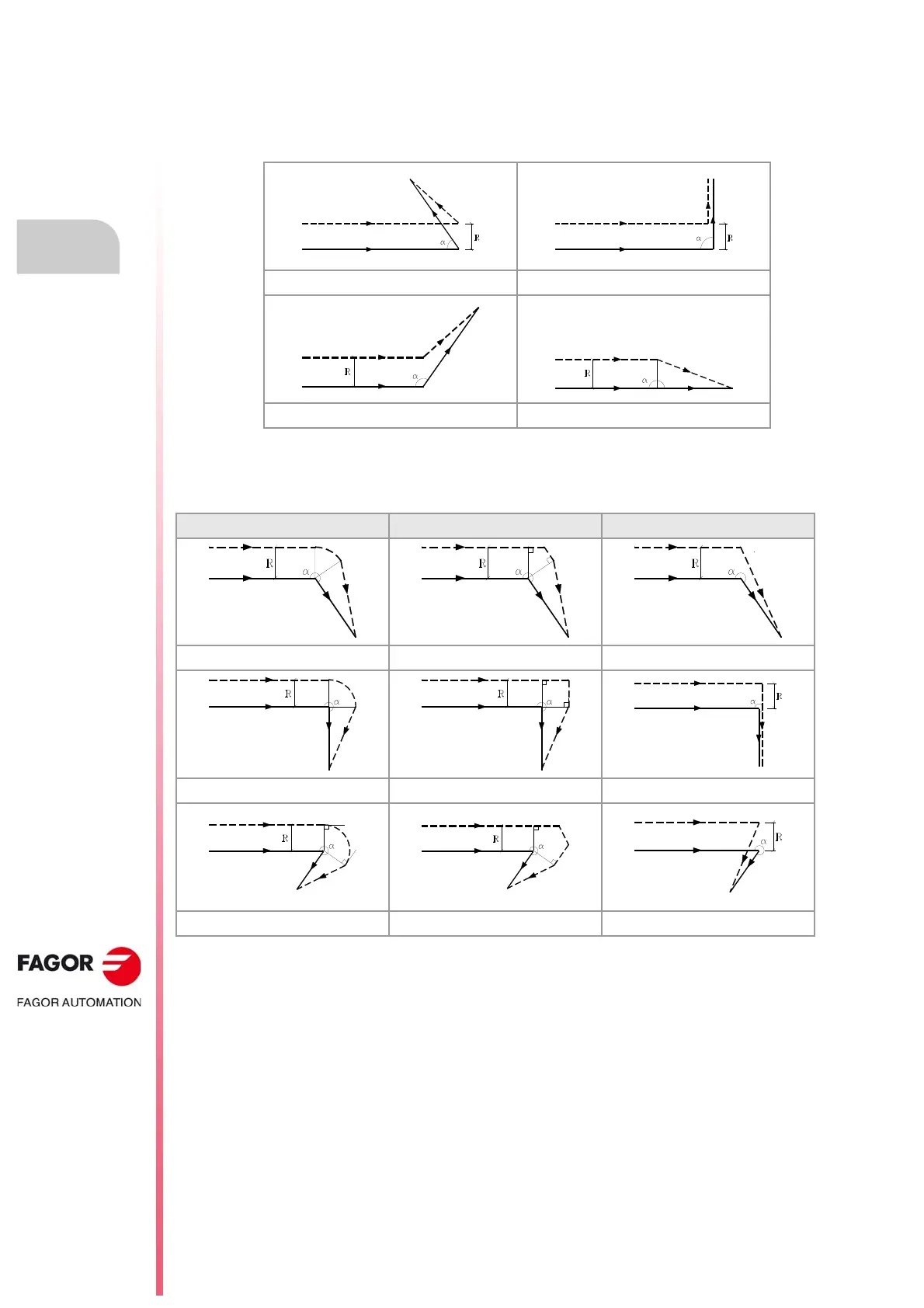 When the angle between the paths is smaller or equal to 180º, the way radius compensation