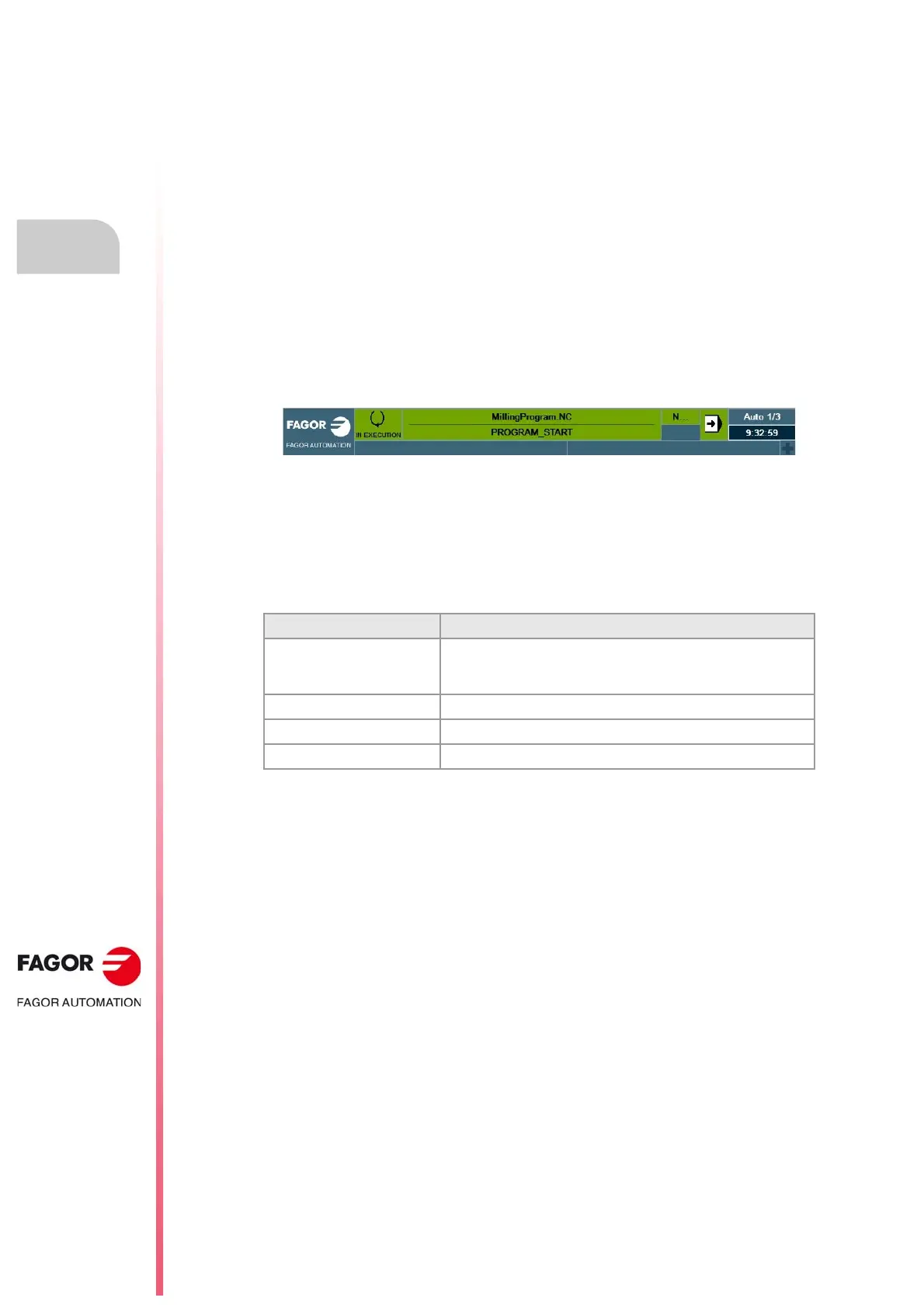 During execution, the CNC displays the name of the subroutine on the general status bar.