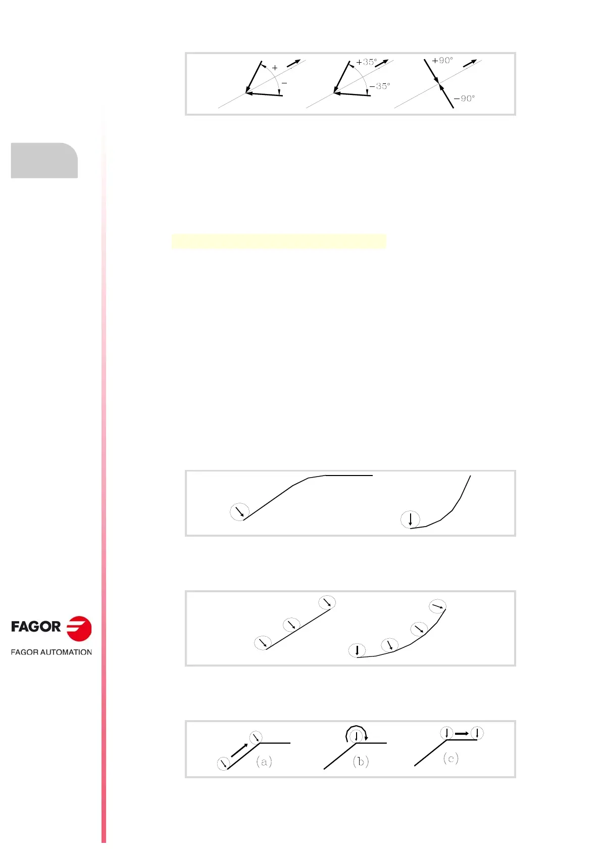 3 Blending two sections requires a new orientation of the tangential axis, the CNC ends
