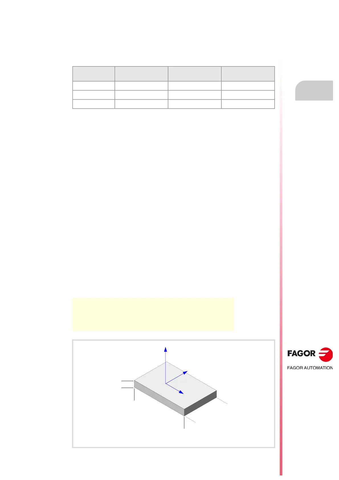 When programming this instruction, it is necessary to define the size of the part and optionally