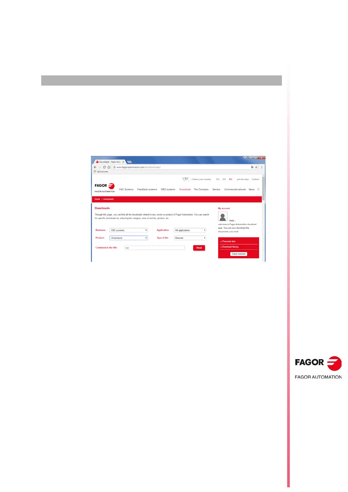 can be downloaded from the Fagor Automation corporate website. The electronic document