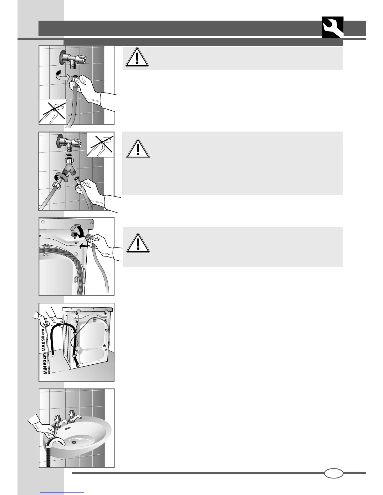 ▼ The drain hose must be positioned at a height of between 60 cm and 90 cm
