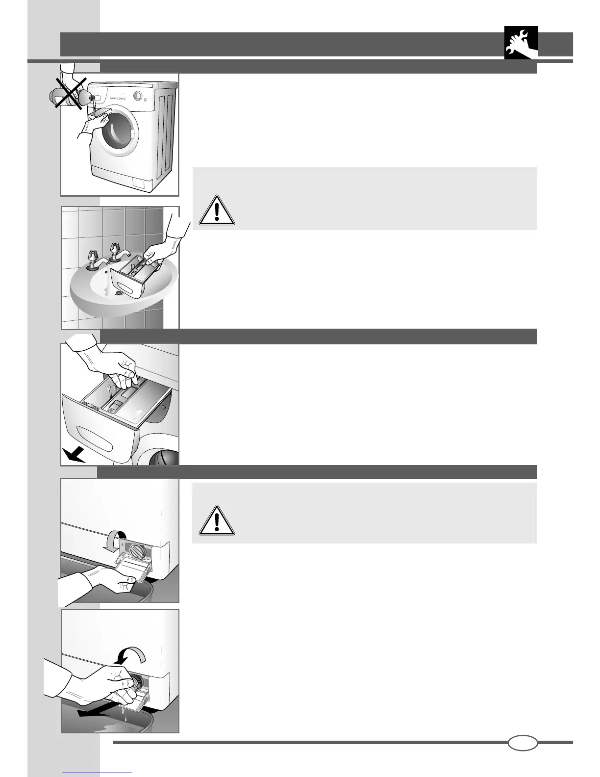 Lavar periódicamente las cubetas de los detergentes. Para hacer esto extraer el