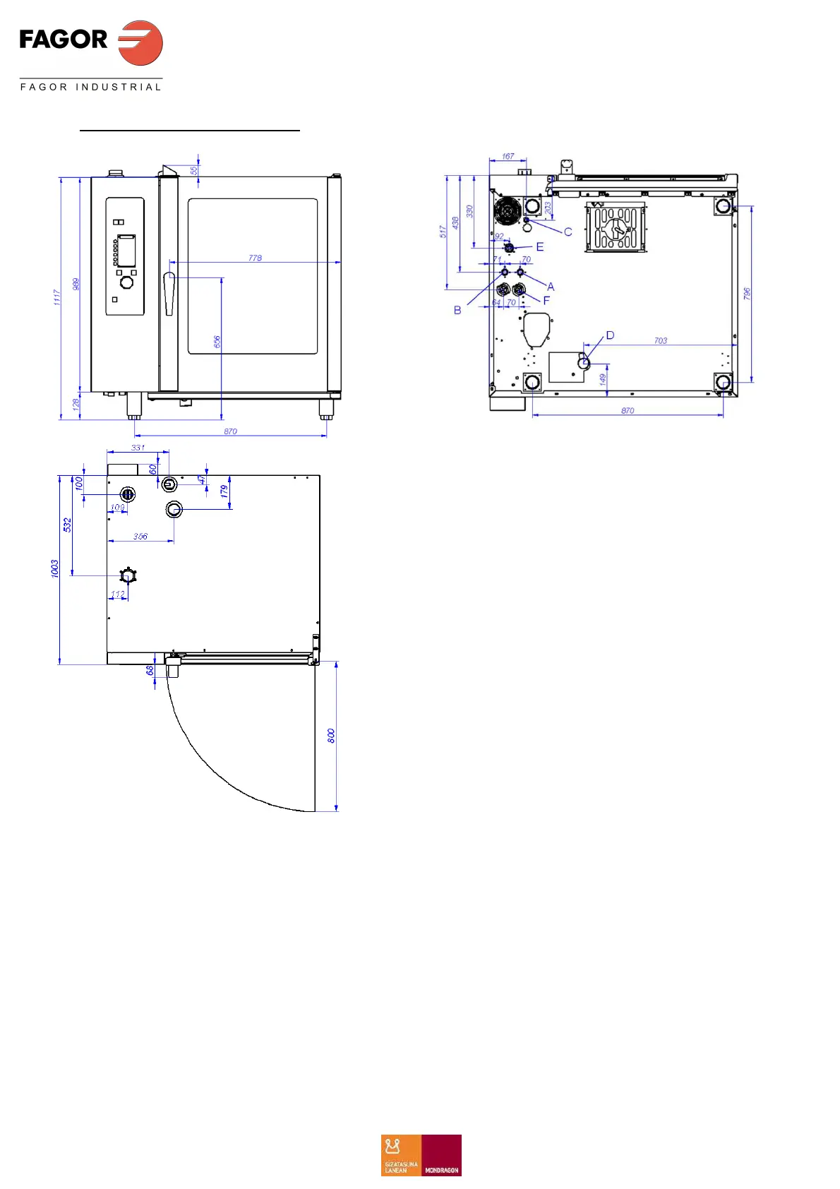 Fagor Advance - General Measurements and Connections (ACG;AG;APG 102); Oven Dimensions and Connection Points