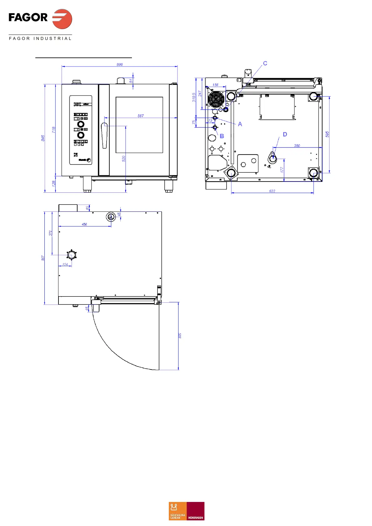 Fagor Advance - General Measurements and Connections (ACE;AE;APE 061); Oven Dimensions and Connection Points