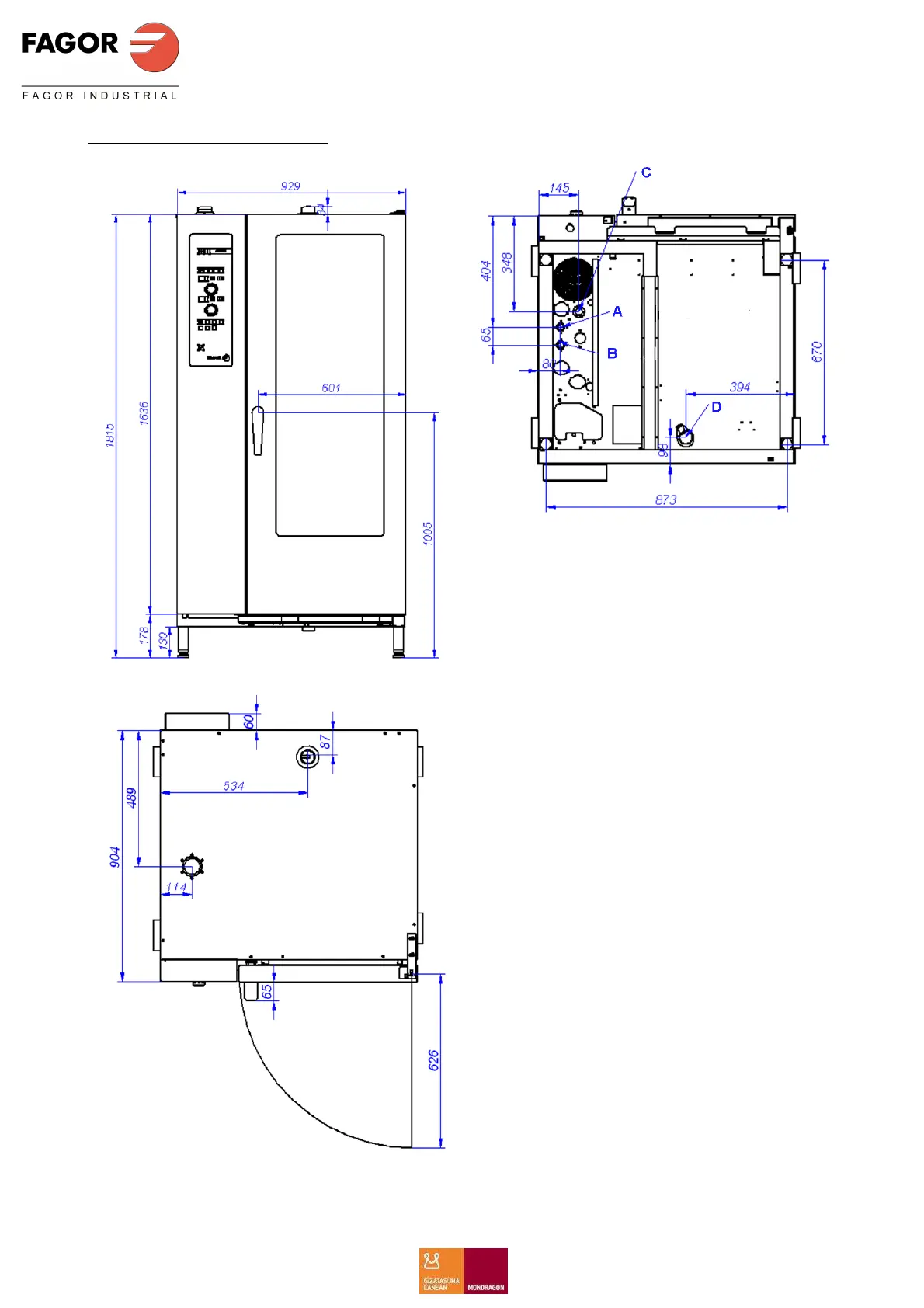 Fagor Advance - General Measurements and Connections (ACE;AE;APE 201); Oven Dimensions and Connection Points