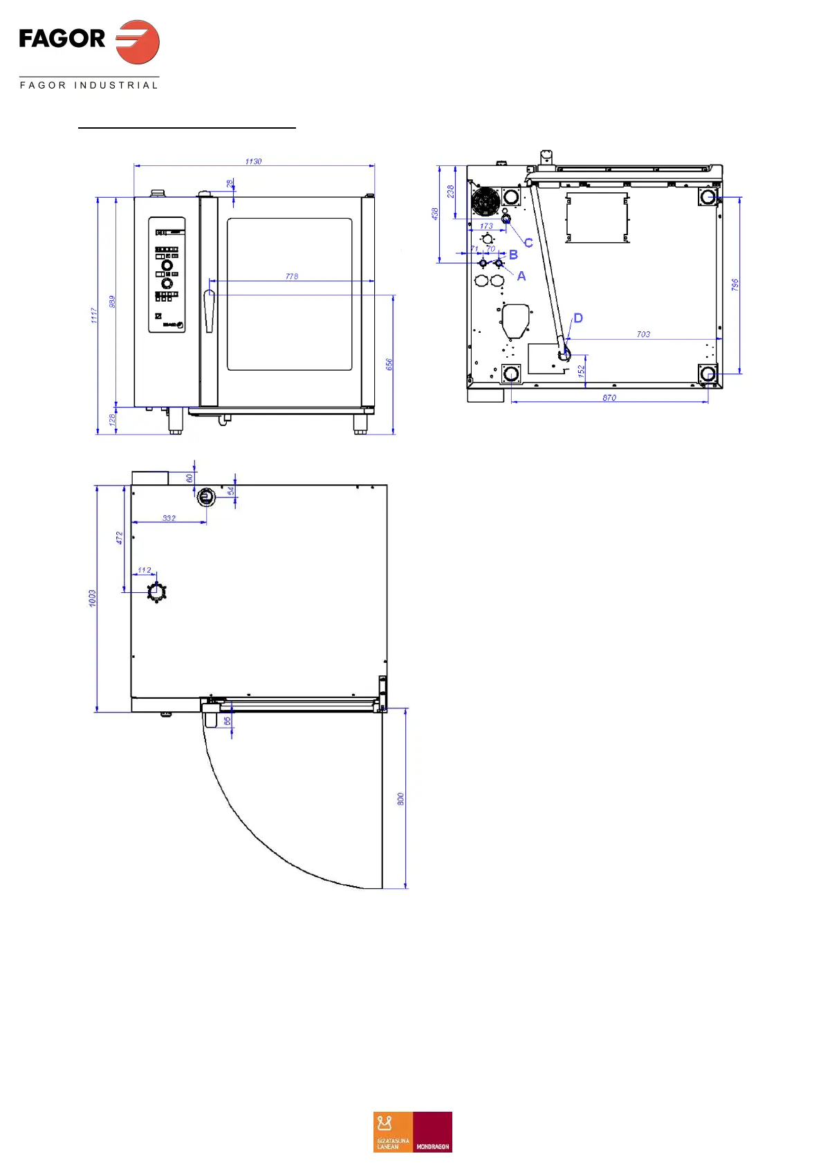 Fagor Advance - General Measurements and Connections (ACE;AE;APE 102); Oven Dimensions and Connection Points