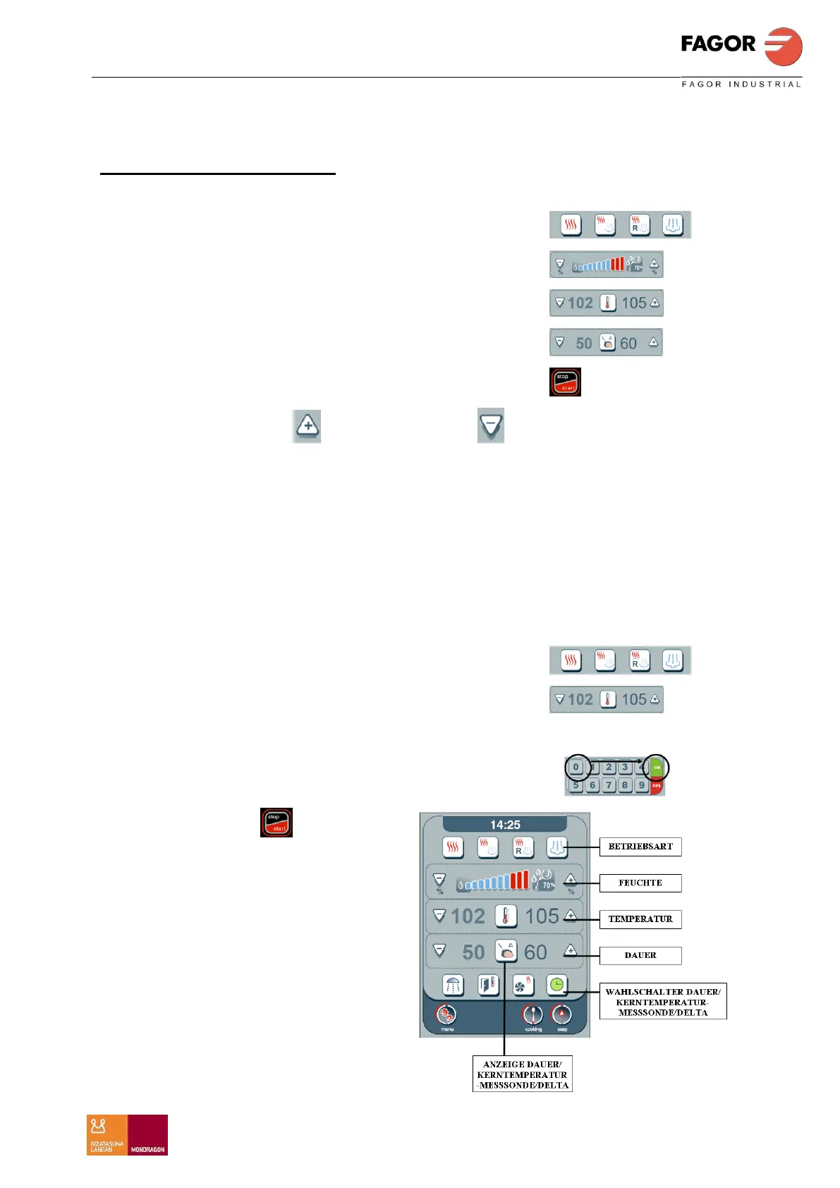 die Garraumtemperatur und die Dauer zu verändern. Wird einer dieser beiden Knöpfe
