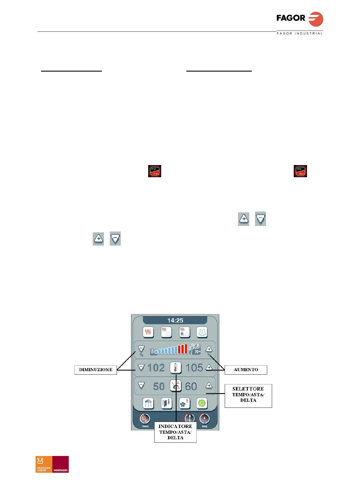 I tasti di incremento / diminuzione della