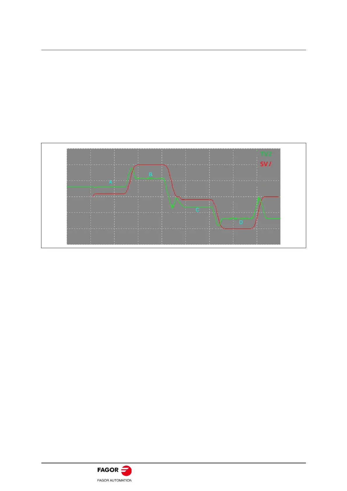 Monitor TV2 and SV1 variable on CNC 8055 by oscilloscope, record the values of TV2 at the point A/B/C/D.