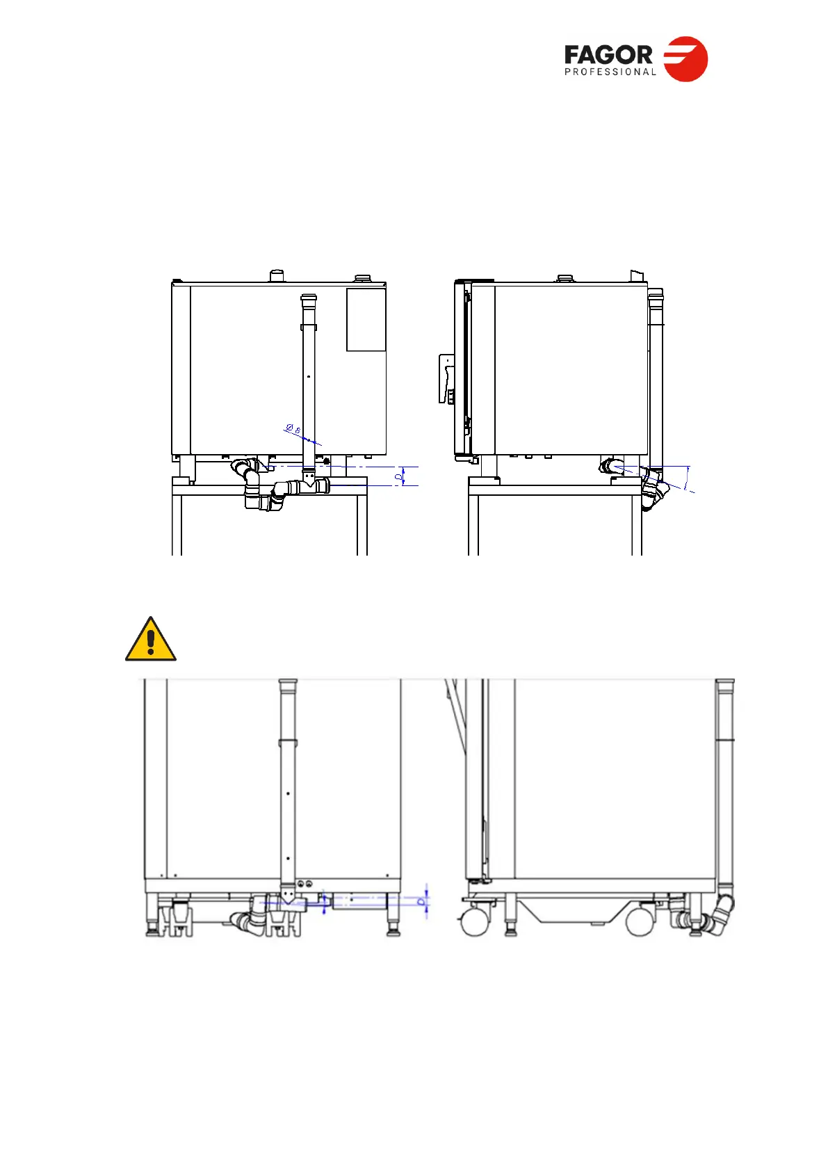 przelewanie się wody do syfonu rynienki ociekowej drzwi pieca. D> 70 mm