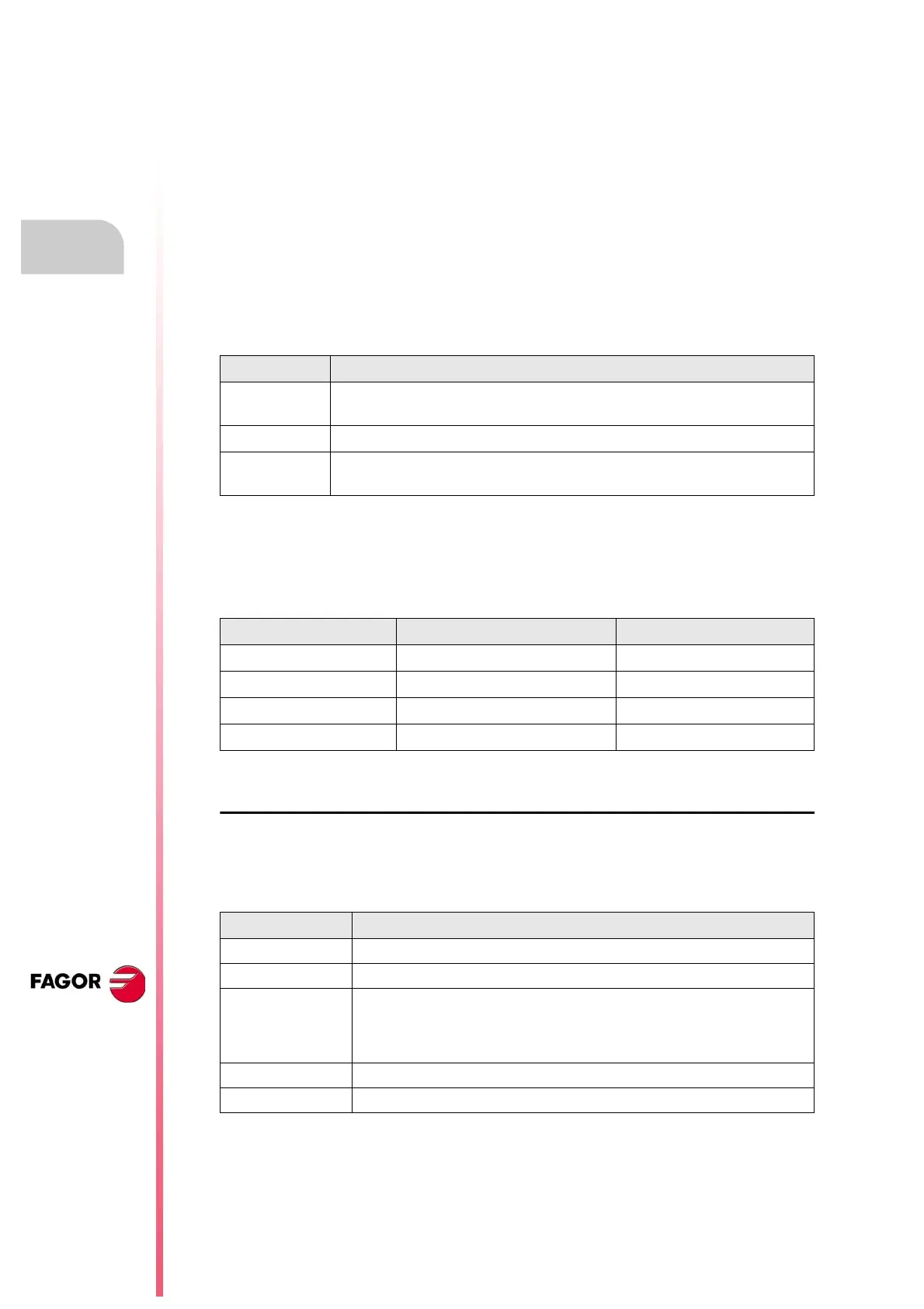 • Machine parameters for the axes (one table per axis)