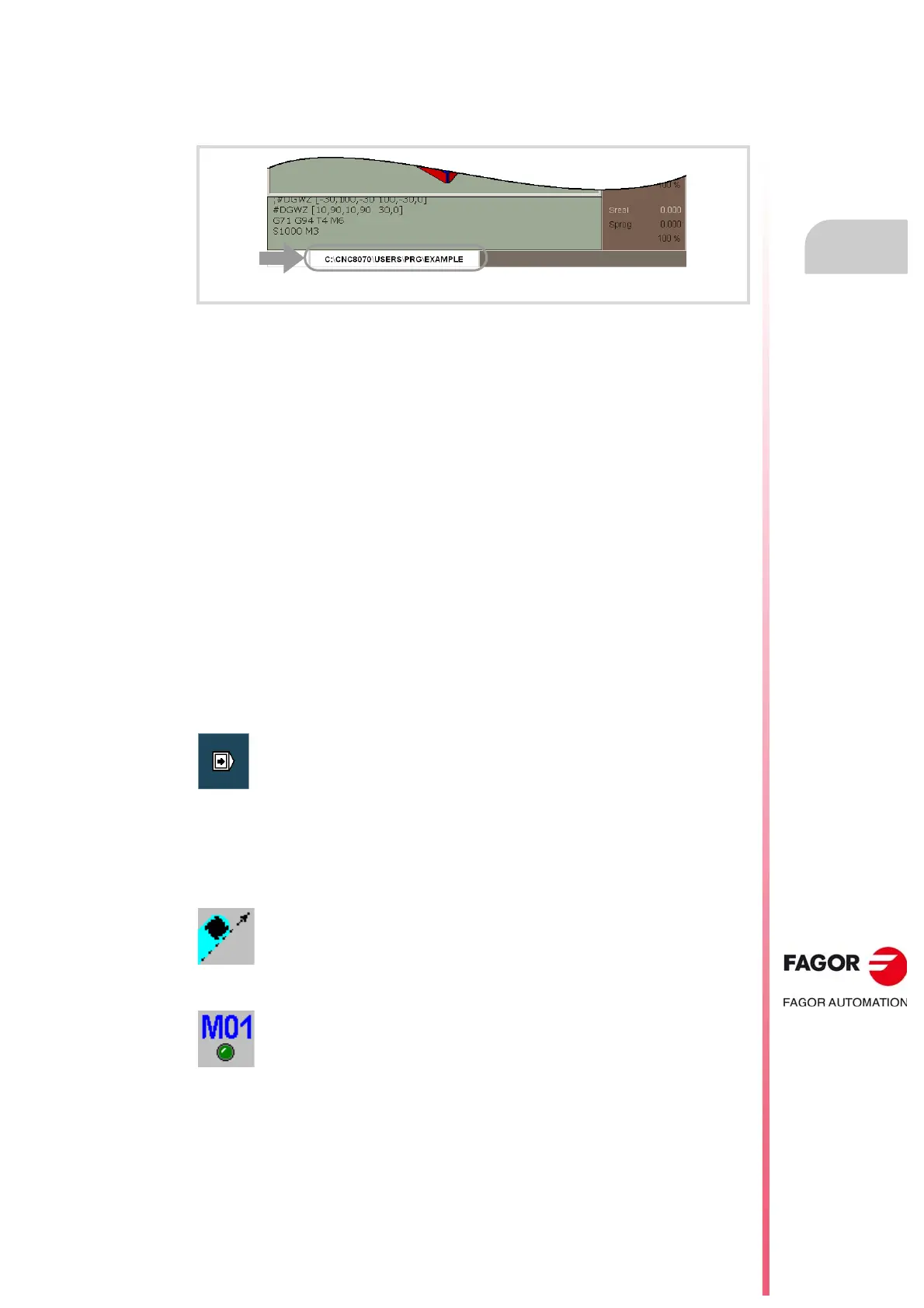 If the –single block– mode is active, program execution will interrupted at the end of each