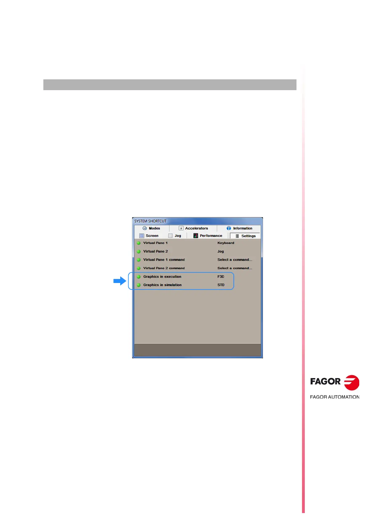Using active HD graphics, the standard Fagor graphics can be accessed through the task