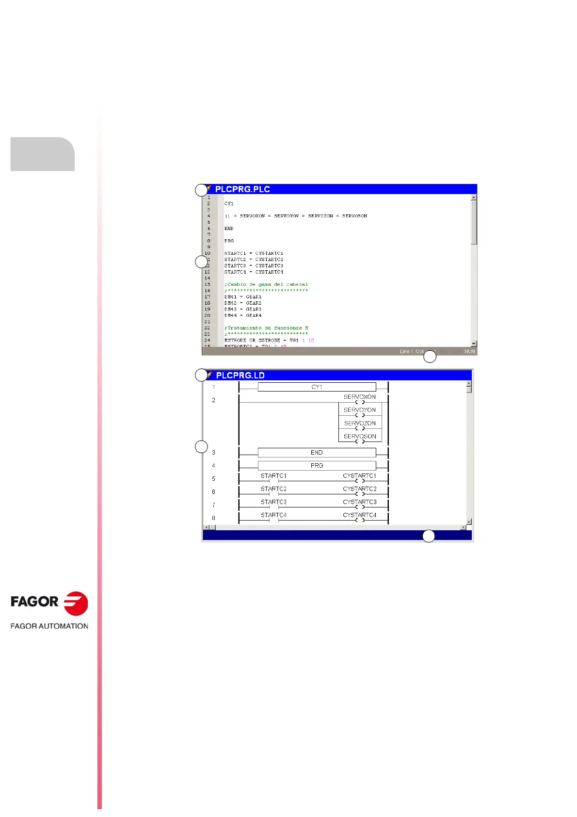 The text editor window (top image) and that of the contact (ladder) editor (bottom image)