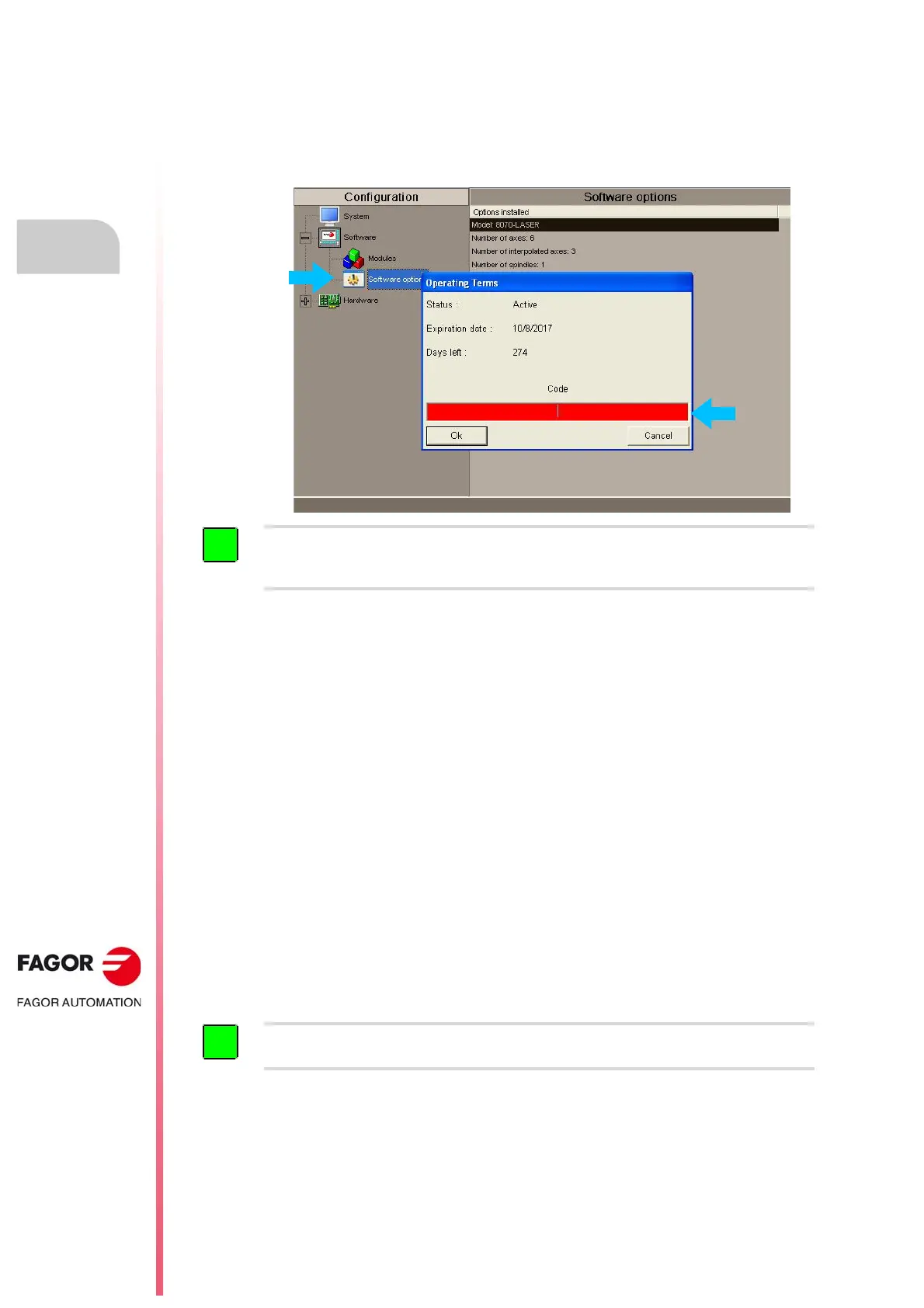 in the "Software options", "Operating Terms” softkey section. If the CNC has the OEM