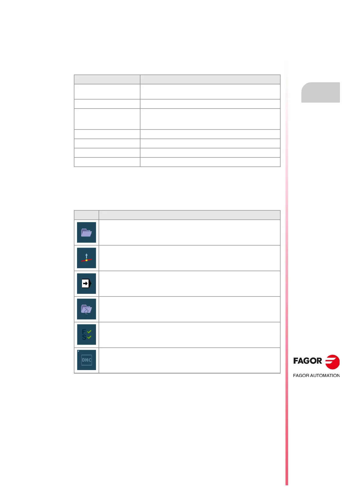 Activating the Fagor Feed Control (FFC) function. The softkey is only active during the