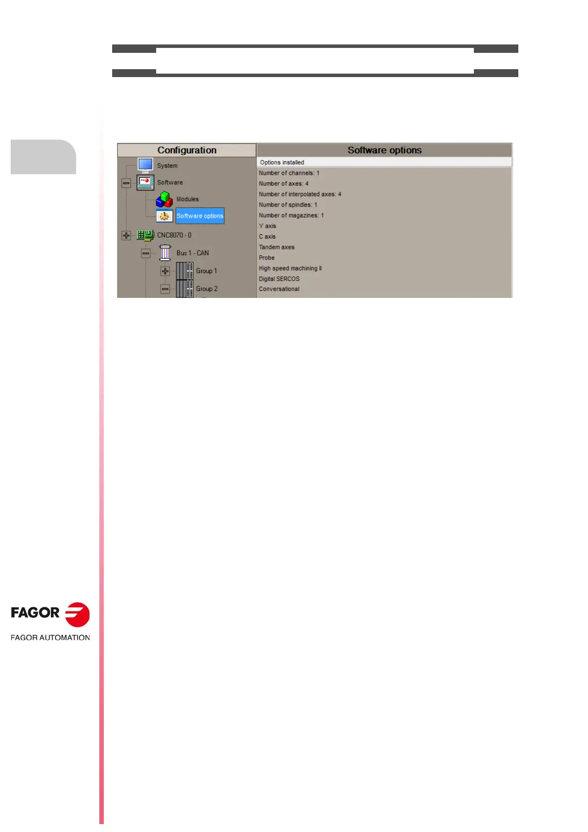software options for the CNC can be consulted in the diagnostics mode (accessible from the task window