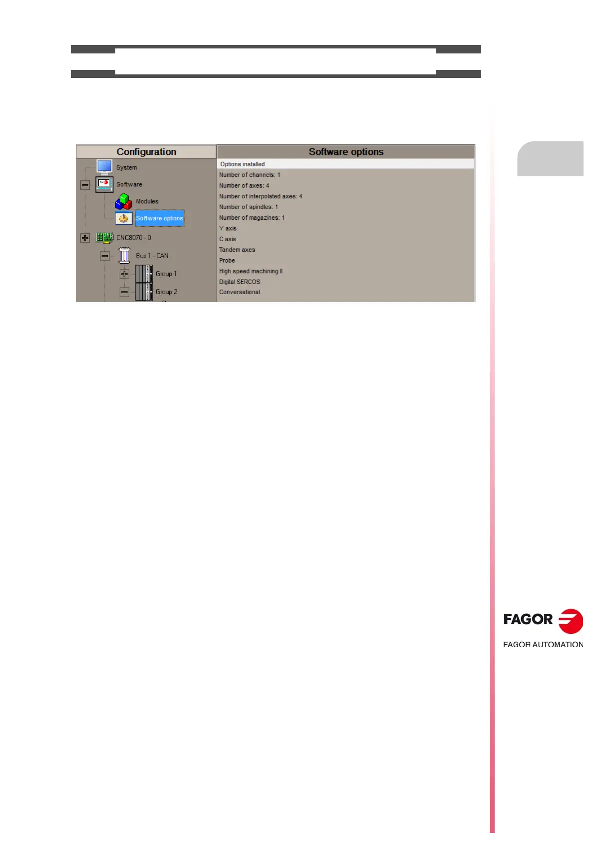 software options for the CNC can be consulted in the diagnostics mode (accessible from the task window