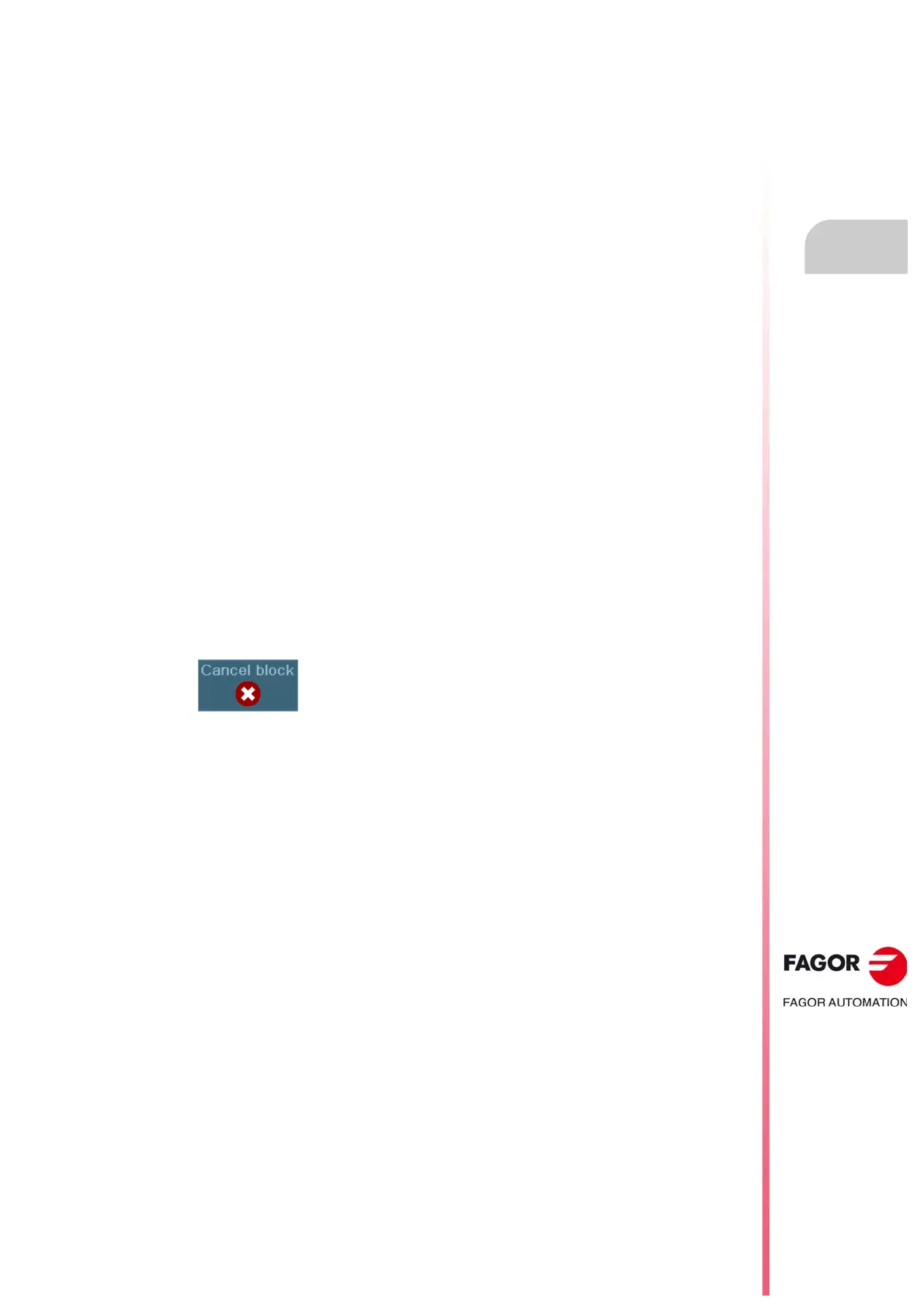 Being the execution interrupted, the CNC shows the "CANCEL" softkey