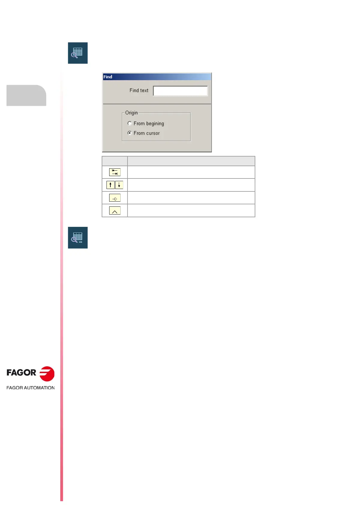 This softkey is used to find text or a value in the table. After pressing this softkey, the CNC