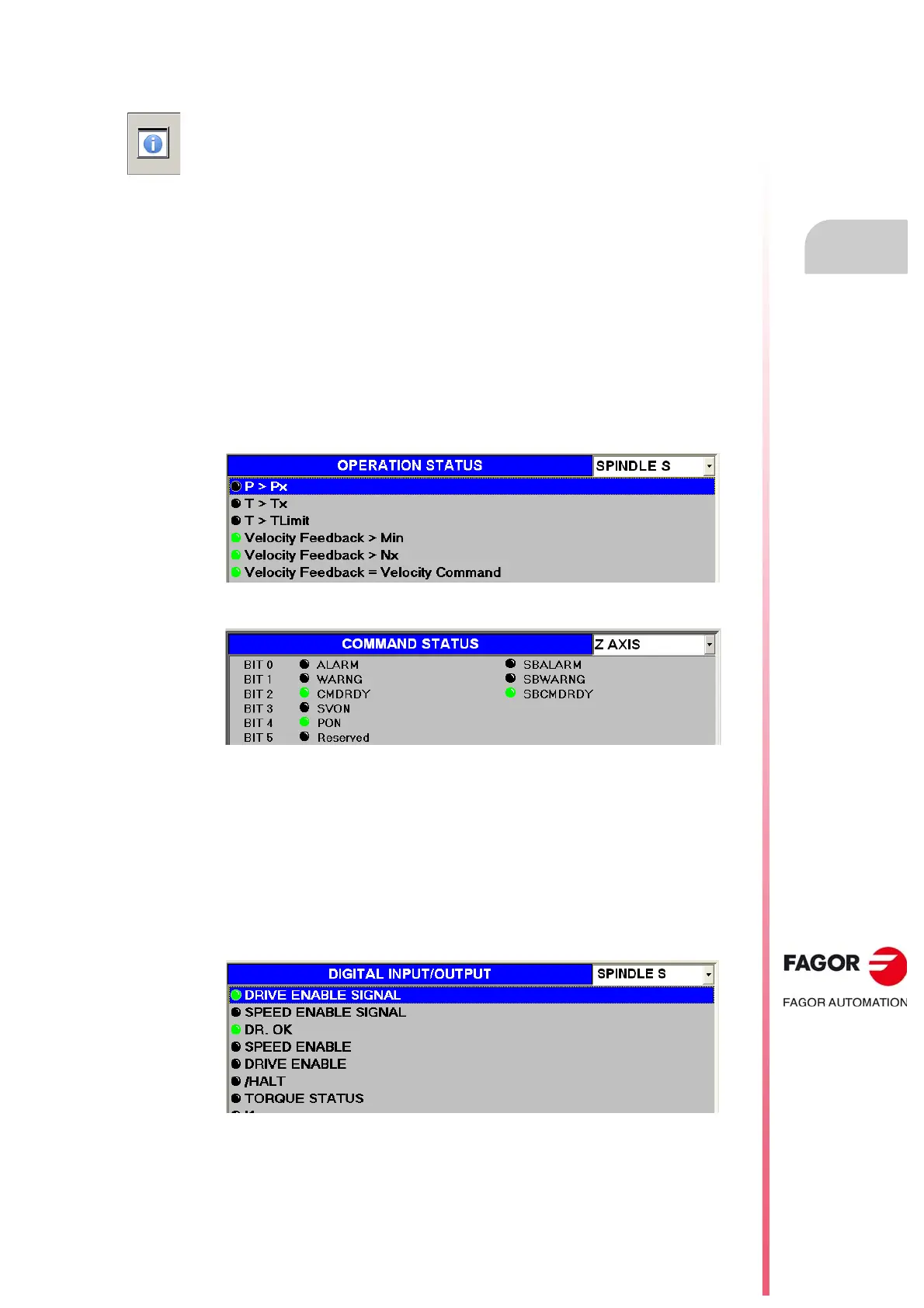 digital input and output of the drive showing the status of the operation at the drive; green
