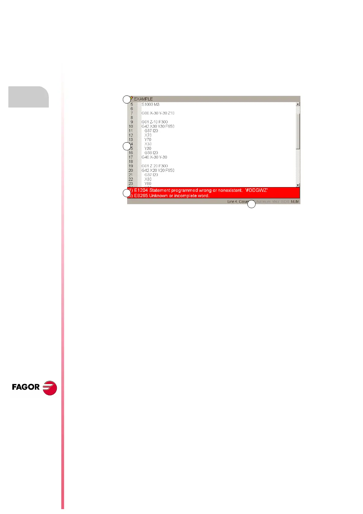 • This area shows, on a red background, the errors that occur while editing the program