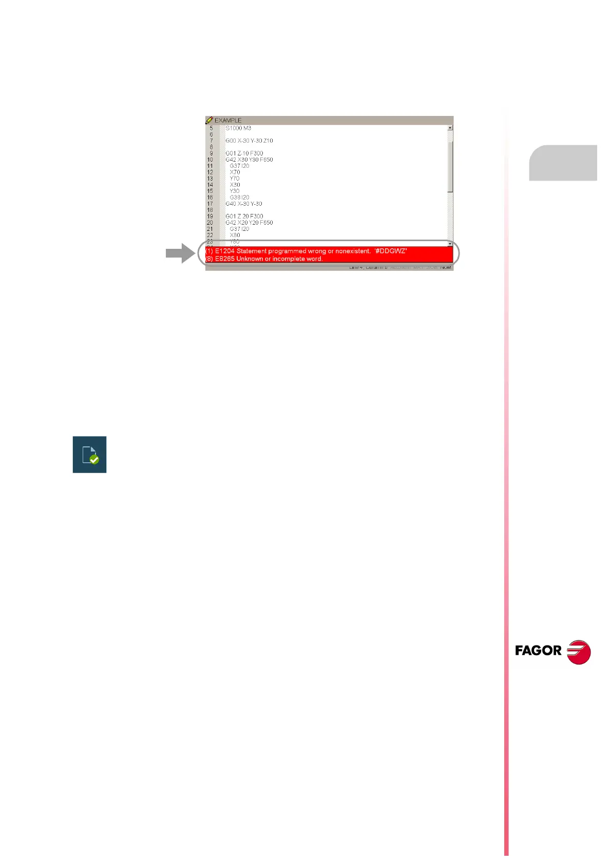 Moving the cursor through the errors of the window, the editor will highlight the block