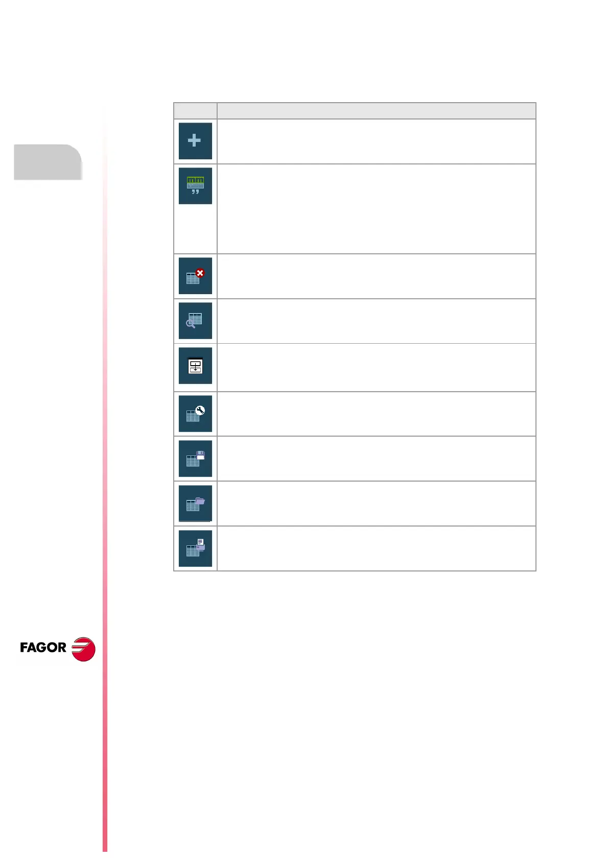 Search a text or a value in the table. When selecting this option, the CNC shows a dialog