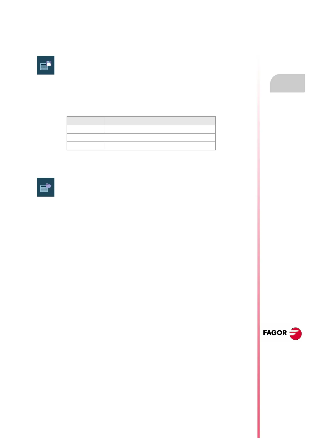whose data is to be saved, press the "Save" softkey and the CNC shows a list with the tables