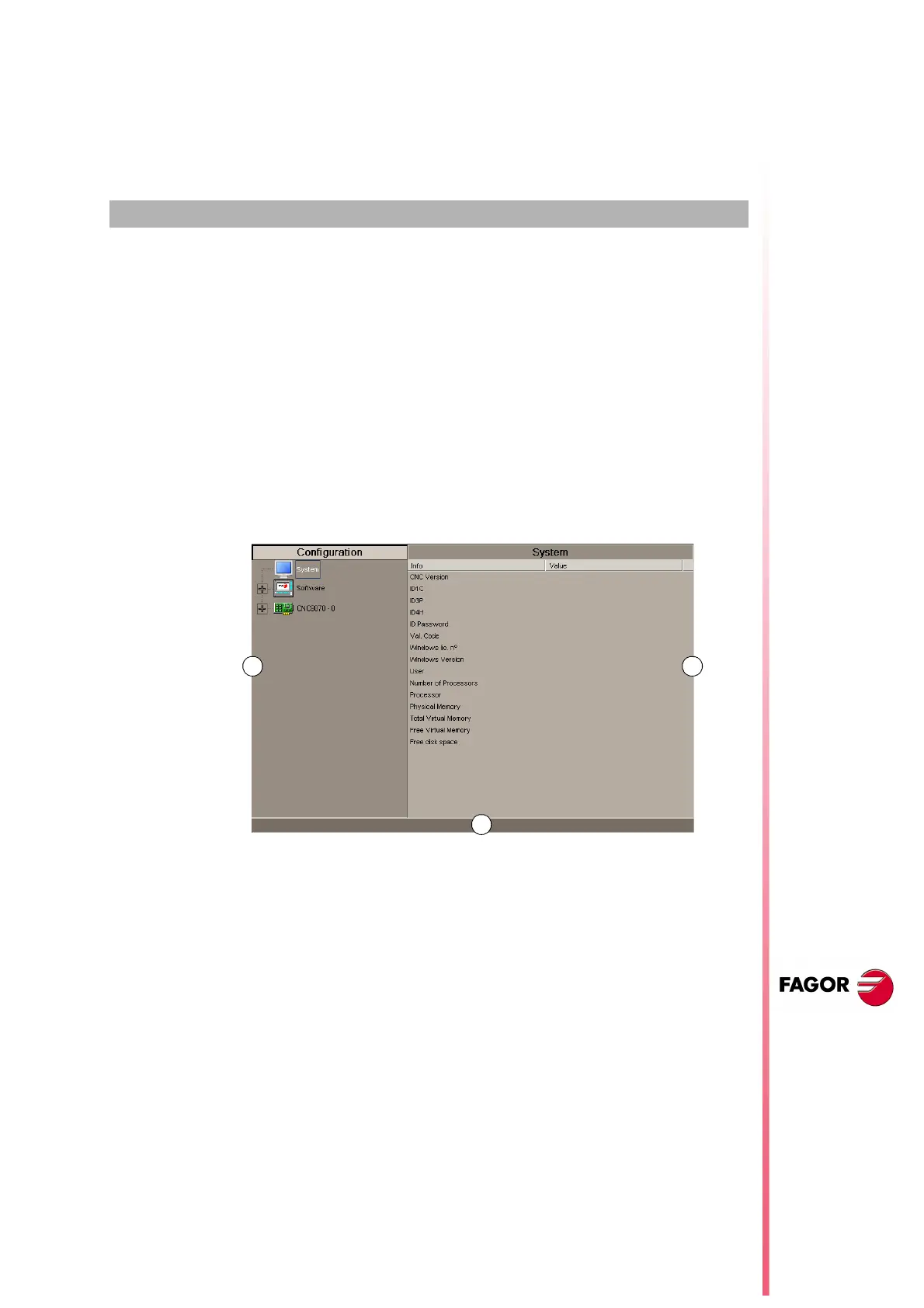 System diagnosis: Information on the system elements; CNC version, user name,