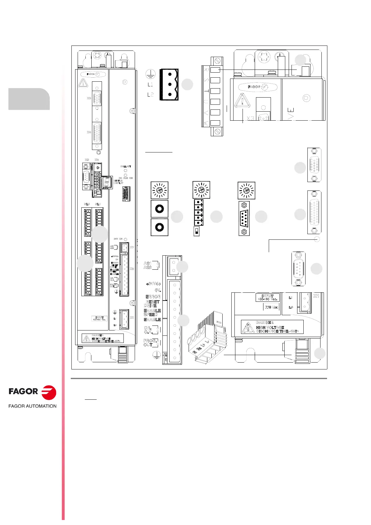 X1. Connector for the internal 24 V DC power supply (2-ph, with line voltage V AC).